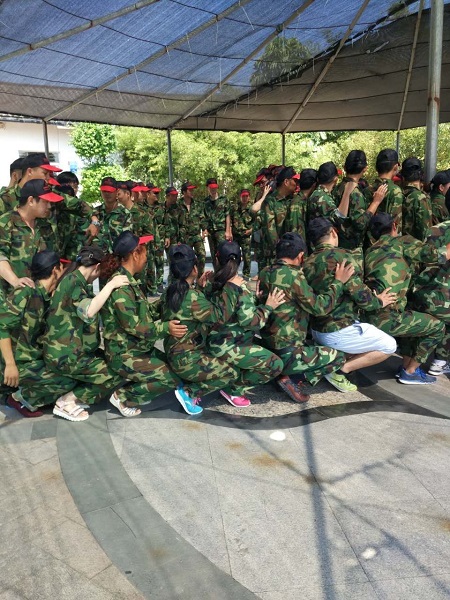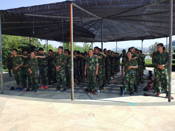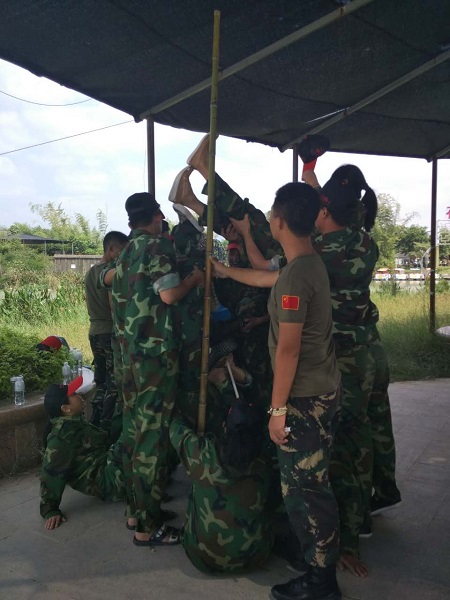 活動開展前,教官將所有人員打亂分成8組,讓每隊選出隊長,發(fā)揮各隊的聰明才智創(chuàng)建隊名與口號,隨后進行了各隊的團隊展示,形式多樣的團隊展示帶來驚喜連連,展現(xiàn)出了隊員們的自信、活力與激情。緊接著,在教練的指導下,以團隊形式在疊腳比高、坐地起身、支援前線、解手鏈等游戲上進行了比拼。其中“疊腳比高”游戲使隊員們強烈感受到團隊協(xié)作的重要性,原以為不可能達到的高度,在集體的努力下,竟然完成了,事實告訴我們,只要大家一起努力,發(fā)揮各自的作用,團隊便能取得勝利,困難都能迎刃而解;而緊張刺激的“支援前線”在消耗隊員們大量體力的同時,也徹底點燃了大家的熱情;隨著各個活動的進行,逐漸展露隊員們的自信與團結。