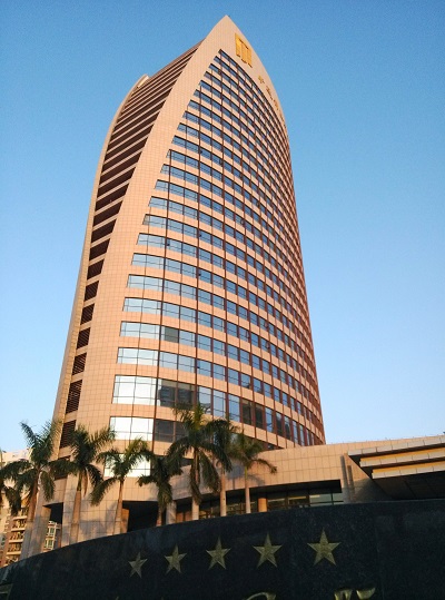 作品文字說明:陽光明媚的天氣,萬里無云的藍天下曠遠錦江國際酒店。