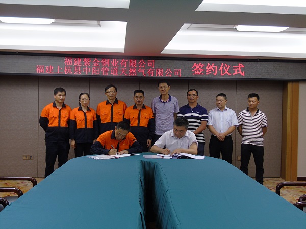 2017年6月27日下午四點三十分,福建紫金銅業(yè)有限公司、福建上杭縣中陽管道天然氣有限公司合作簽約儀式在上杭大酒店隆重舉行,紫金銅業(yè)總經(jīng)理周建輝、上杭中陽總經(jīng)理向榮等領導參加簽字儀式,雙方分別簽訂了天然氣供氣及工程施工合同。